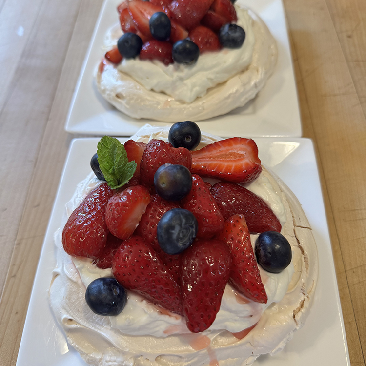 In this dessert class you will learn to make Pate Choux for Profiteroles and also for Cream Puff Swans. You will practice with a piping bag. We will make a beautiful Pavlova with seasonal fruits and pillowy whipped cream that holds its shape. Luscious Pots de Creme au Chocolate is a killer dessert that is quick and easy to make, and will satisfy the choc-a-holics in your group. Finally, you will learn my secret -- quick and easy Warm Chocolate Sauce.